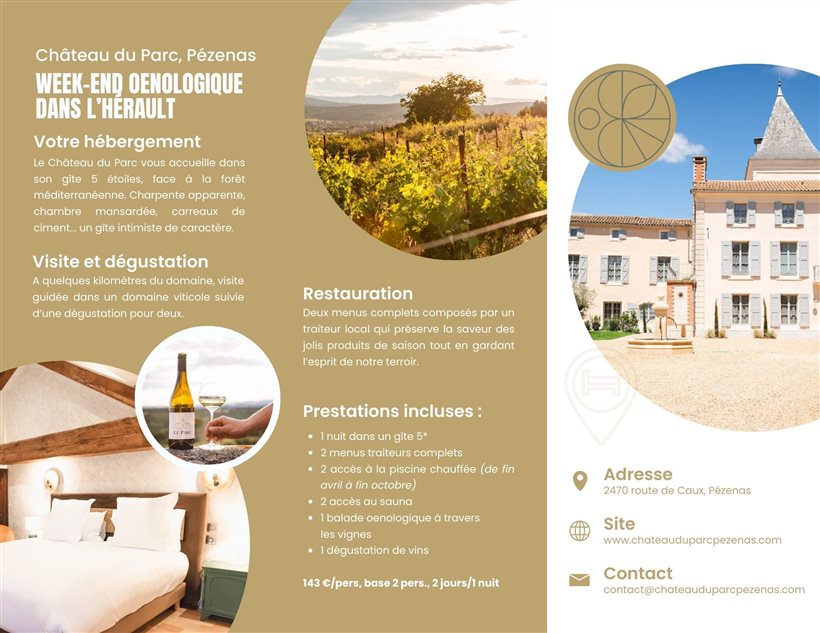 Le Château du Parc vous propose un séjour tout inclus pour allier plaisir des sens et découverte des terroirs: