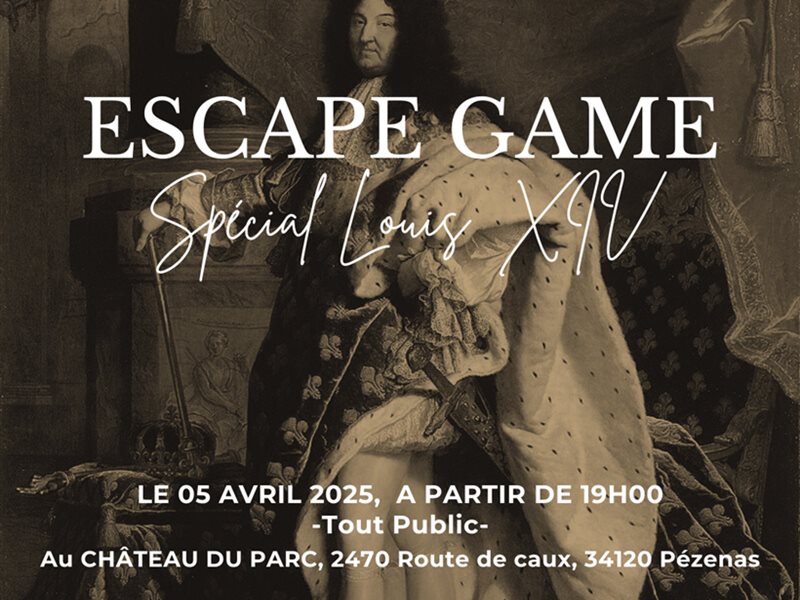 Venez vivre une expérience unique au Château du Parc lors d’un Escape Game spécial Louis XIV ! En 1h30, résolvez des énigmes, percer des secrets et sauvez l'honneur du Roi Soleil. L'événement se déroule le 05 avril 2025, à partir de 19h00, avec des tarifs adaptés pour tous les âges. Inscription obligatoire pour cette aventure immersive !